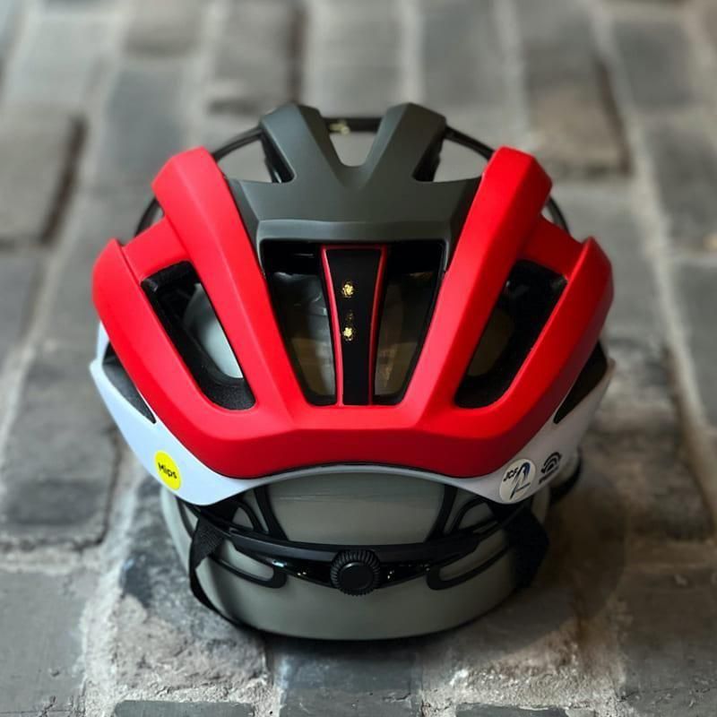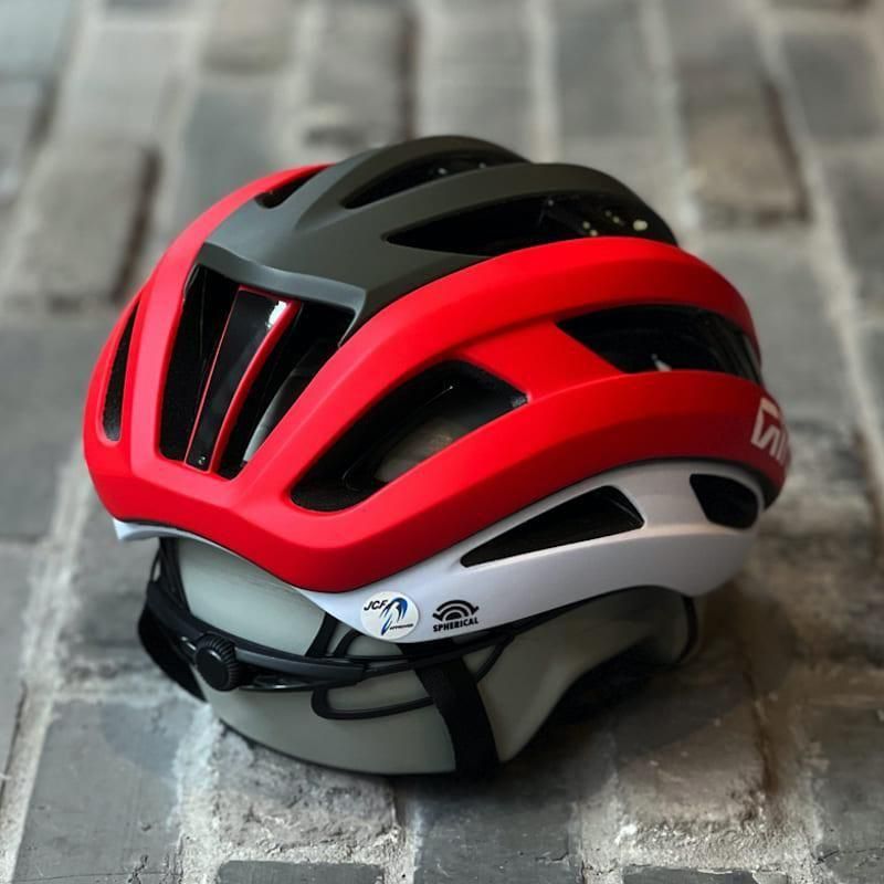 これまでのMIPS構造(ヘルメット内側に取り付けられた内部ライナーと、外部シェルとを独立させていた構造)から、SPHERICAL(スフェリカル)テクノロジー という技術により、外部シェルを2枚に分割した安全構造を採用。