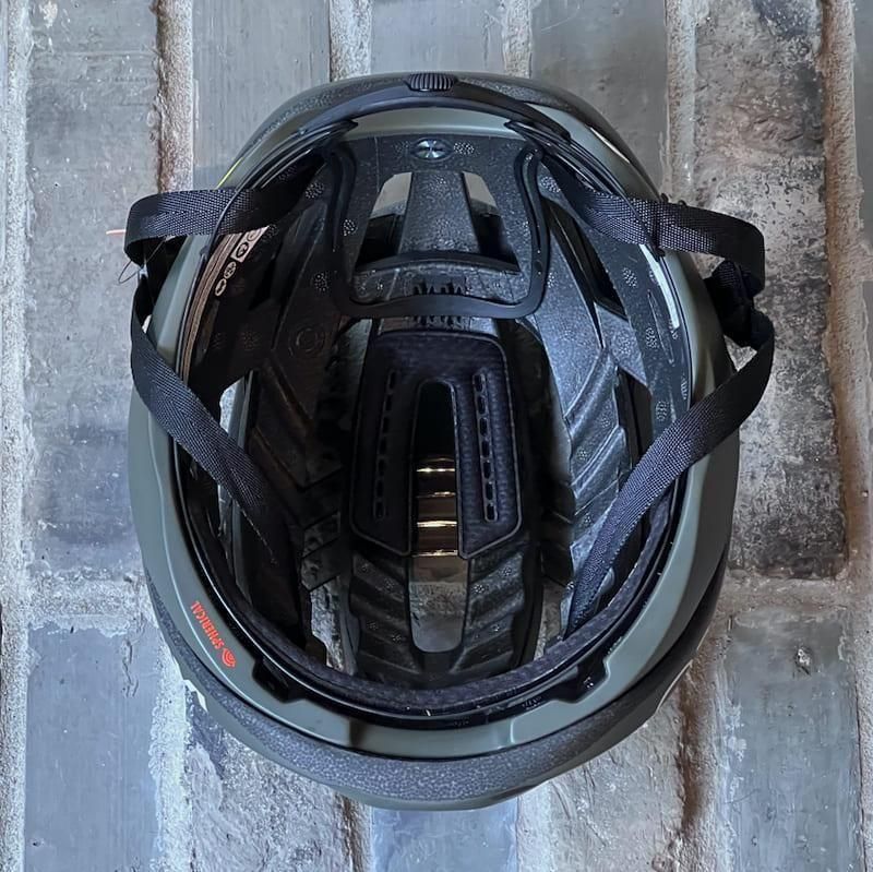これによりそれぞれが独立して滑るように動くことで、衝撃をいなすように和らげる構造とすることで、ヘルメット内部がスッキリとし、エアフロー(通気性能)が格段に向上。