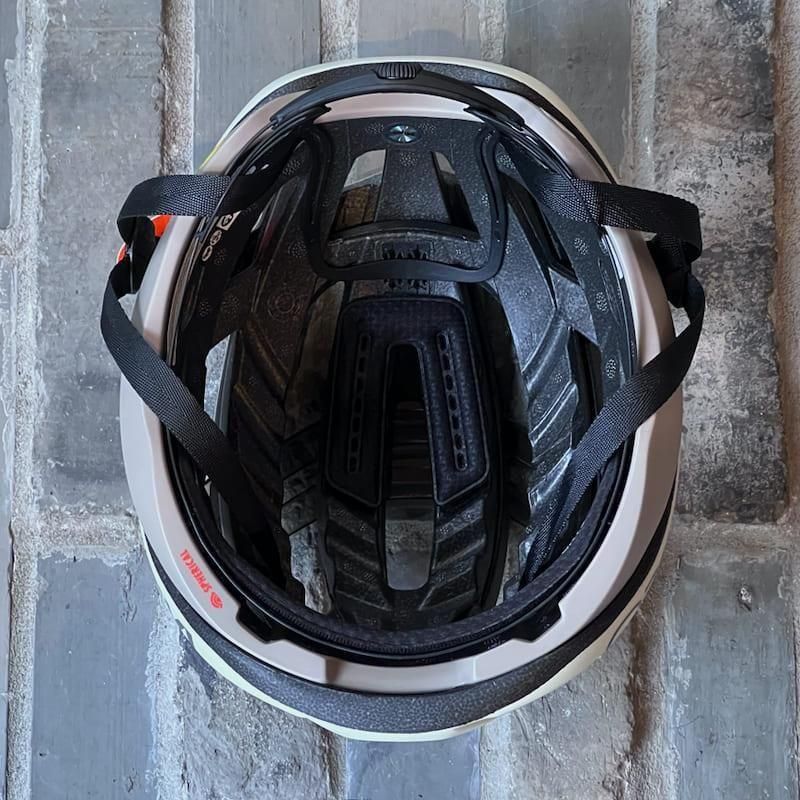 これまでのMIPS構造(ヘルメット内側に取り付けられた内部ライナーと、外部シェルとを独立させていた構造)から、SPHERICAL(スフェリカル)テクノロジー という技術により、外部シェルを2枚に分割した安全構造を採用。