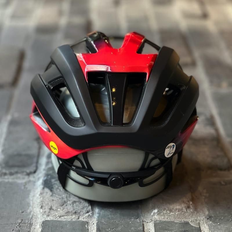 夜間やトンネル内などでも安全性・視認性を高めるために、ARIESはヘルメット後部のベンチレーション開口部中央、高い位置にリフレクティブハイライトを大きく縦に配置。