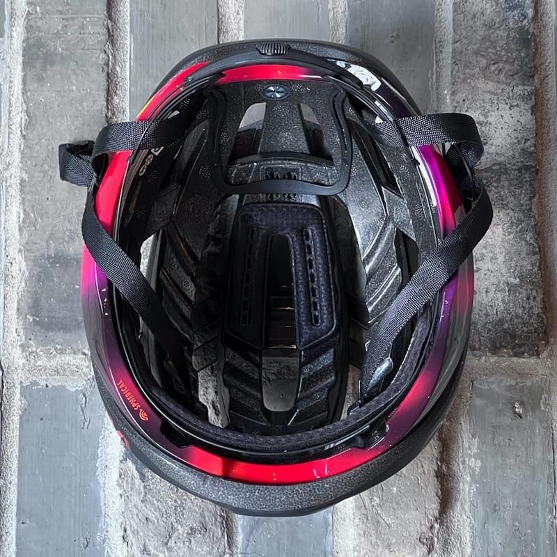 これによりそれぞれが独立して滑るように動くことで、衝撃をいなすように和らげる構造とすることで、ヘルメット内部がスッキリとし、エアフロー(通気性能)が格段に向上。